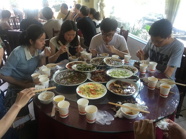 菜陆续上桌,大家也真的饿了,都开始了不顾形象的海吃